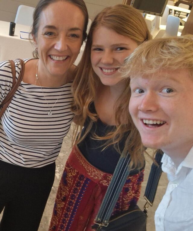 Anoushka H (Ap23) and Finn W (Pn23) with Fiona Sutherland, WCI Head of Marketing